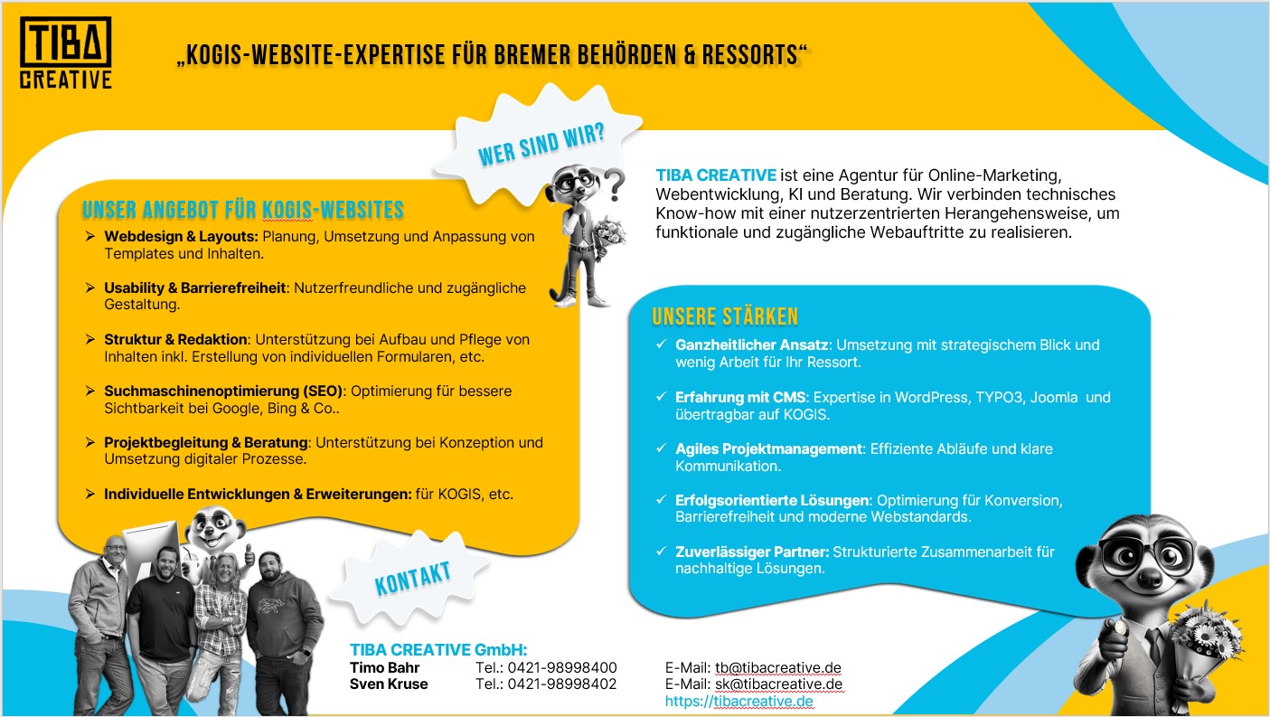 - Struktur & Redaktion: Unterstützung bei Aufbau und Pflege von Inhalten inkl. Erstellung von individuellen Formularen, etc.